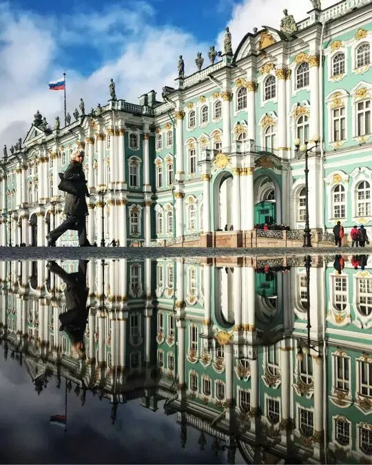 ▲俄罗斯圣彼得堡,雨后清晨,行人匆匆,路过冬宫。