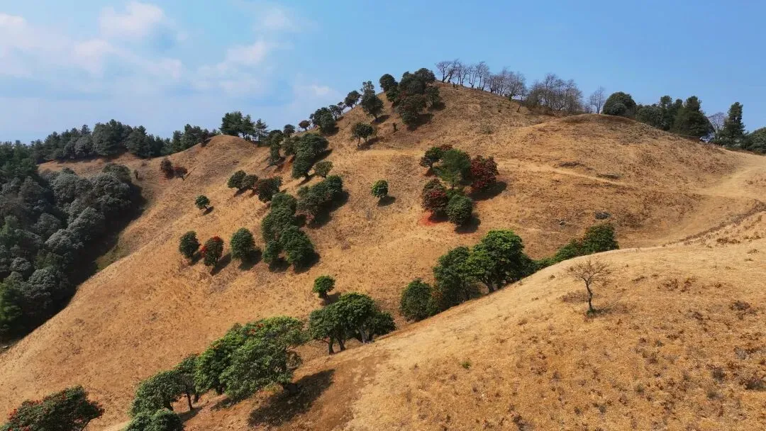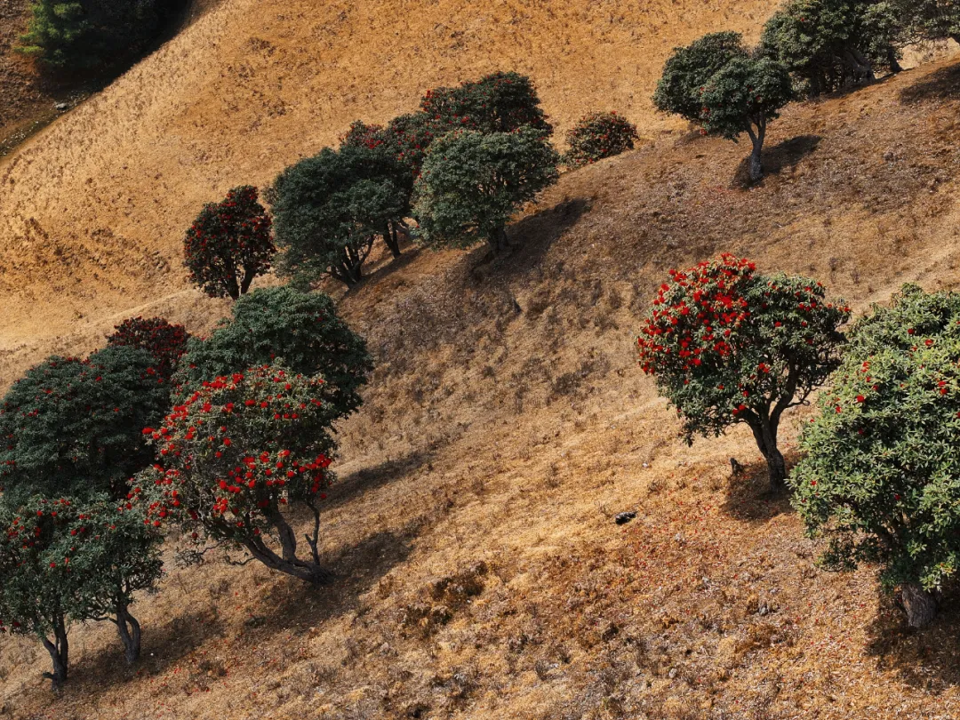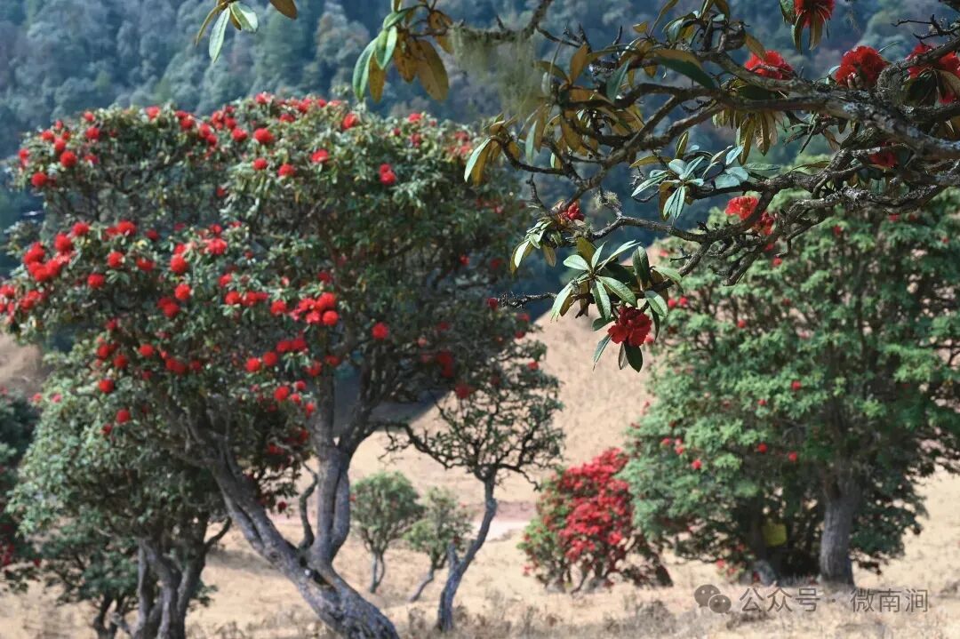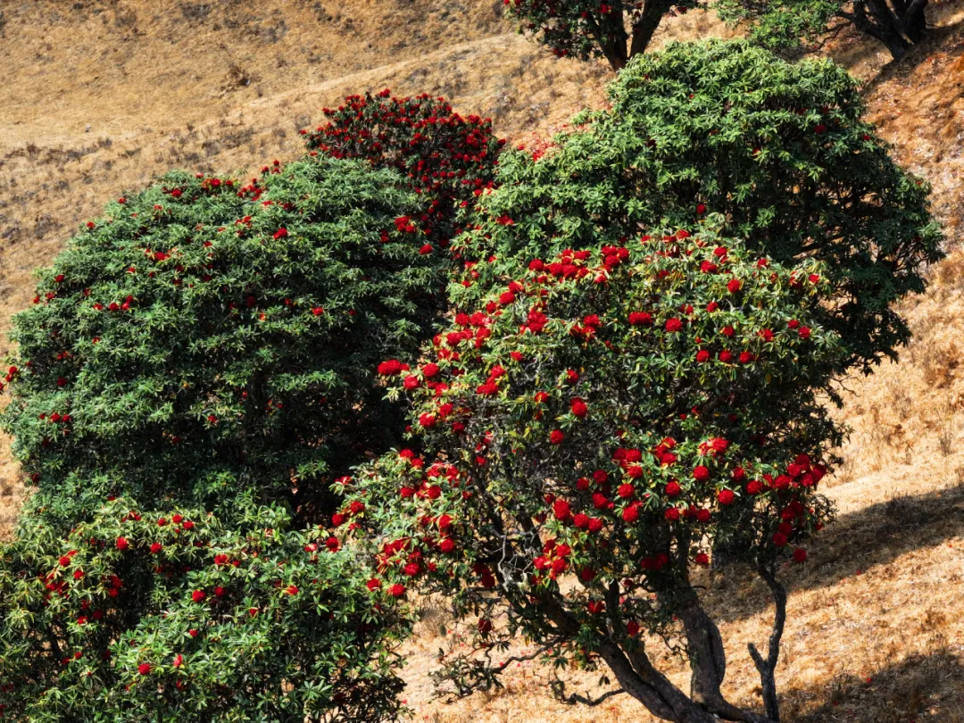 春季(2-4月):赏马缨花(大树杜鹃)和古茶花。马缨花红艳似火,与蓝天、草甸构成绝美画面;村里老庙房院的三棵数百年古茶花树,冬春开花,花期长达5个多月,是独特的人文景观。