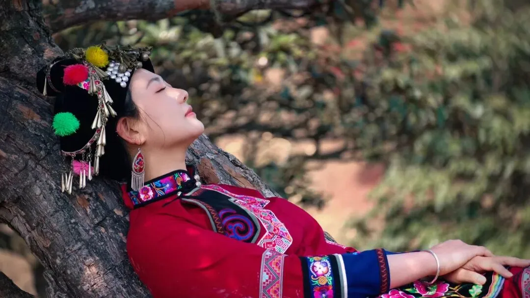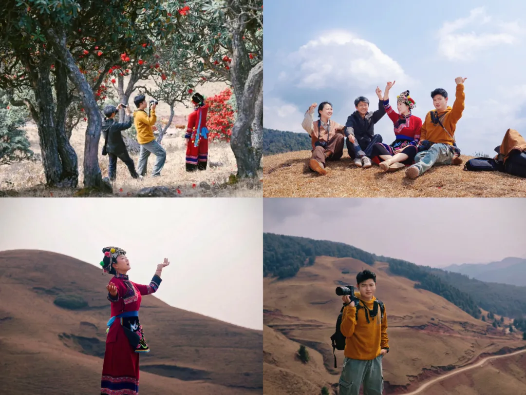 中景互动:在马缨花林间,让人物与花枝同框,搭配彝族服饰更有地域特色。