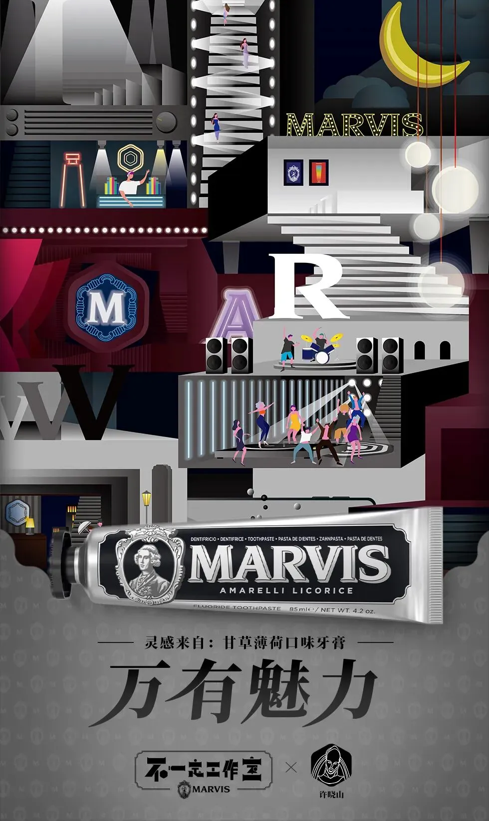 作为驰名全球的传奇意大利口腔护理品牌,Marvis不仅提升了每日的常规口腔护理体验,更是设计领域的一个标杆,象征着一种超越传统的生活方式。Marvis带来的体验突破传统、充满趣味,就像这次的“不一定工作室”的初衷一般,生活方式不一定只是按部就班,计划外的世界总会更精彩。