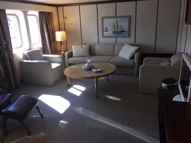 不过相对于一般的远洋邮轮,这种“摆渡邮轮”的设施较少,免税店、酒吧、赌场都很小。而且很早就会停止营业,喜欢通宵Happy的可能会有点失望。想一下大部分游客都需要早点休息转天到了新的城市还要奋斗,于是也就有情可原了。套房的minibar可以随便喝,所以晚上娱乐项目结束后,大家都在房间里聊天了。