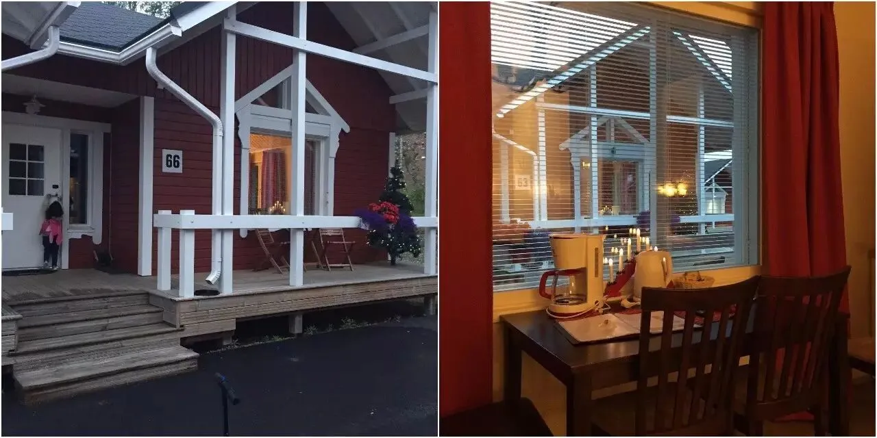 圣诞老人的家,横跨北极圈的小度假村,即便不是白雪皑皑的冬天,也是我们此行的重要目的地之一。在官网可以订度假村内的小木屋,可以免费加床(变成2张双人床),含早,只要800人民币一晚,在北欧简直算是良心价了。小木屋还有桑拿室,可以自己来个芬兰浴。