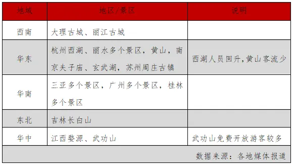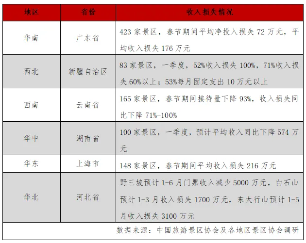 在华北地区,以河北省为例,根据对重点景区的定向调研,野三坡景区预计疫情影响会持续到上半年,景区门票收入预计会减少5000万元;白石山景区预计1-3月份收入损失会达到1700万元,其中春节前期的工程和营销投入共计80万元,人力成本450万元;东太行山预计1-5月份收入损失会达到3100万元,其中人力成本340万元,银行贷款利息546万元。
