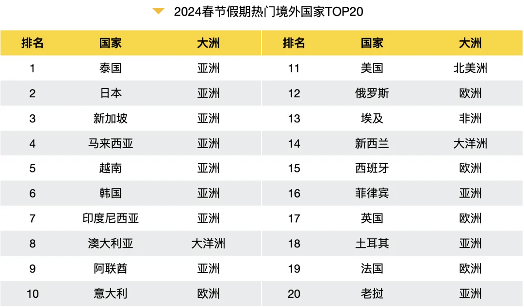 泰国位列“出境游“热门国家榜首
