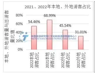 上半年本地出游热度高于外地出游热度,6月本地出游热度恢复好于外地出游热度。2022年旅游城市本地出游量与2021年同期相比减少明显,但本地出游量占比仍高于外地出游量占比。6月旅游城市本地出游量恢复至2021年的80%,外地出游量恢复至2021年的45%,中、西部地区恢复情况总体好于东部地区。