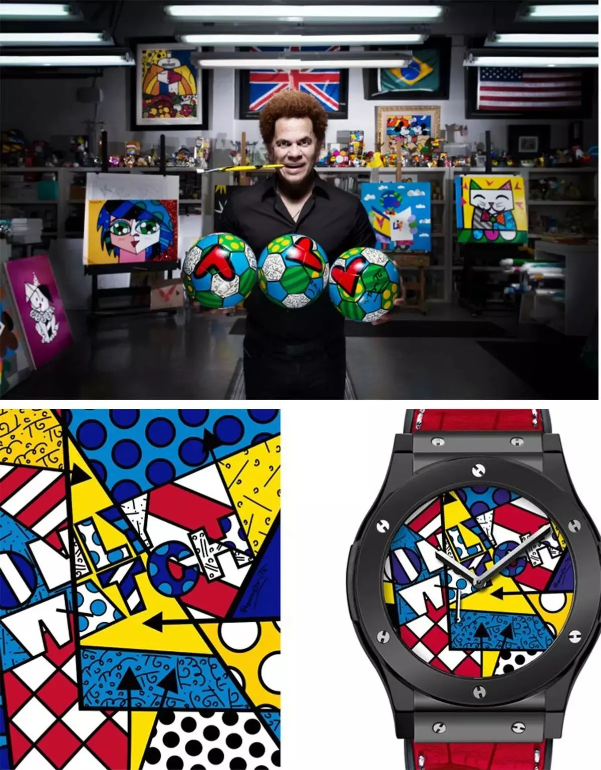 第一个是巴西的艺术家 Romero Britto 创立的同名品牌 BRITTO。这位艺术家是一位玩波普的,曾经跟手表品牌 Hublot 也有过合作。(买不起表,还买不起行李箱?)