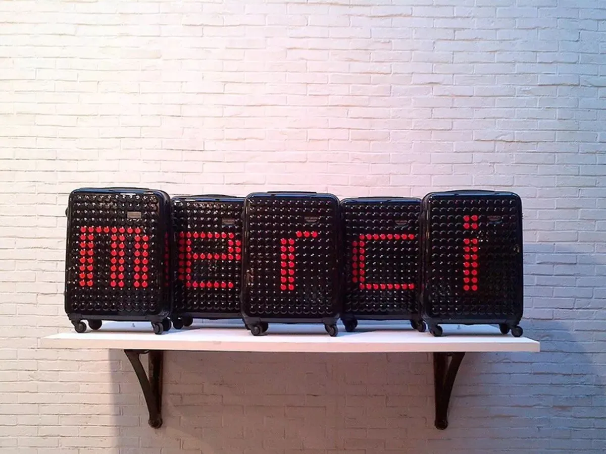 另外一个行李箱品牌呢,是 DOT-DROPS,由法国女孩 Bernard Ehret 创立的牌子。箱子最有意思的就是他的外观,由整齐的圆点构成,赠送的 3M 贴纸可以让你在圆点上作画,创造属于你自己的风格~