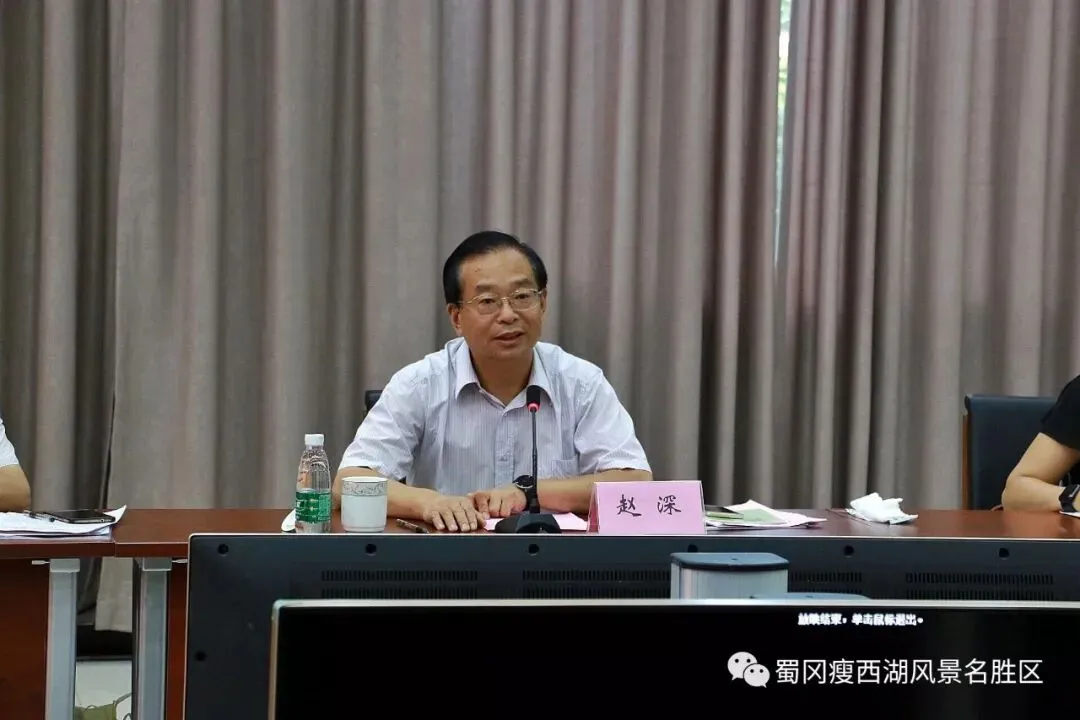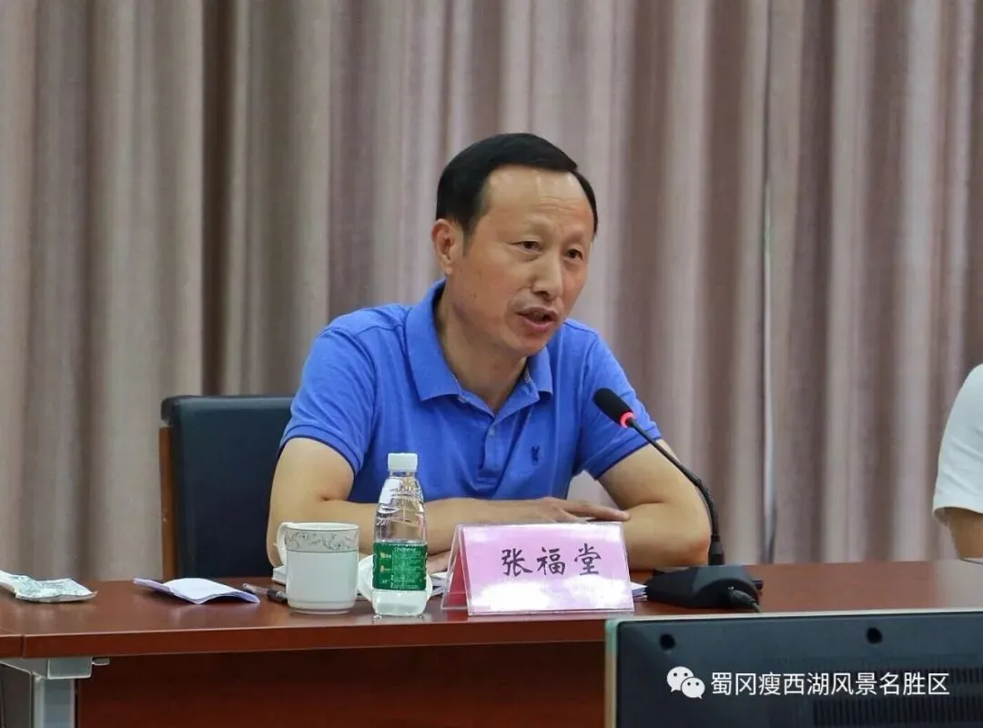 景区党工委书记张福堂在测评会上致辞,党工委副书记刘马根向测评组专家详细汇报了档案工作省五星级创建工作情况。