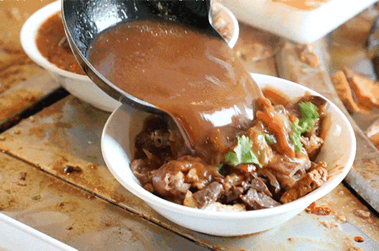 在卤煮的世界里,有三个固定元素:菜底、汤、火烧。菜底,即卤煮本人,常说的卤煮火烧,指的就是菜底+火烧。一碗标准的菜底通常包含肠、肺、炸豆腐,再加上几块聊胜于无的五花肉。