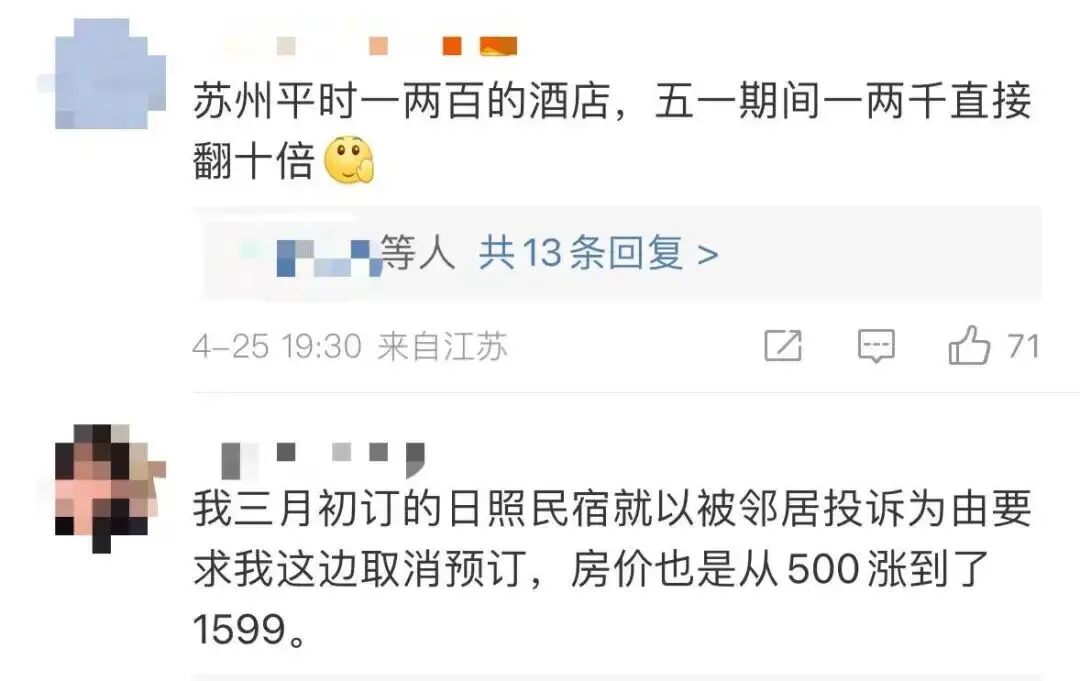 当然,总有人舍不得调休得来的五天长假。 就在#五一民宿现涨价毁约潮#登上微博热搜的同一天,#与其人挤人,不如来个反向旅游#也上了某红书的热搜。