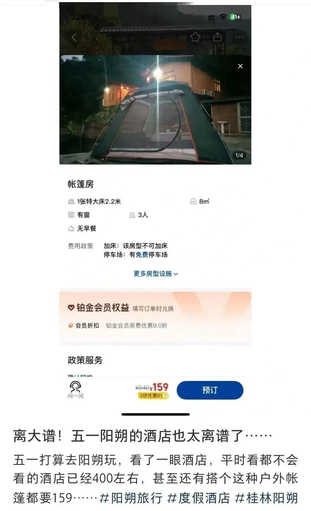 酒店外搭个帐篷也值159,逼得网友人均李安——“我看不懂但大受震撼”。