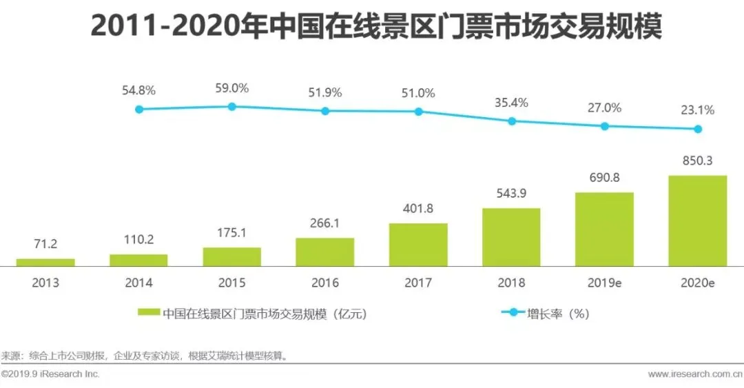 消费习惯日趋线上化,中国在线景区门票规模稳定增长