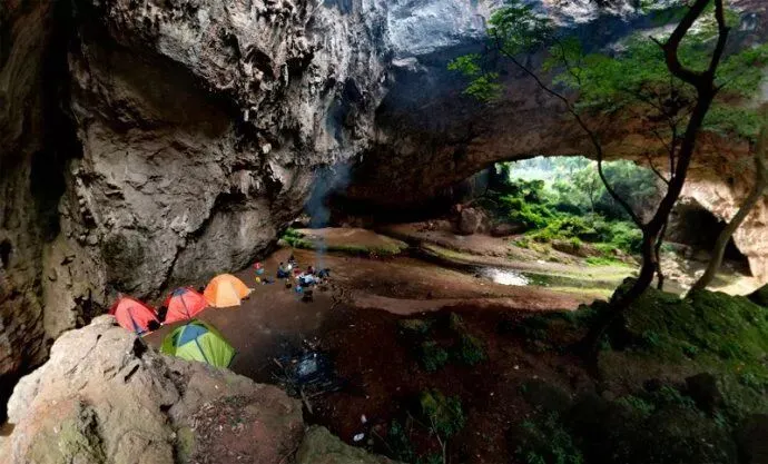 宜良九乡以溶洞而闻名,来这里露营,自然不能错过这独特的体验。三脚洞位于距宜良九乡20余公里的山谷之中,洞内七彩钟乳变幻莫测,一条清澈的麦田河从洞口蜿蜒而过,给这里的景致平添了几分柔美。