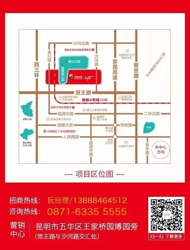 公共交通:地铁四号线(在建)大河埂站直达昆明五华吾悦广场,毗邻地铁7号线(规划),周边10多条公交线路...全城快速通达