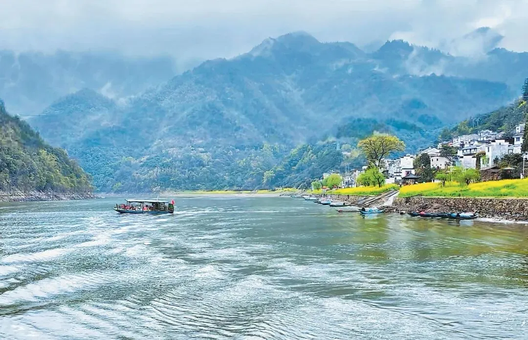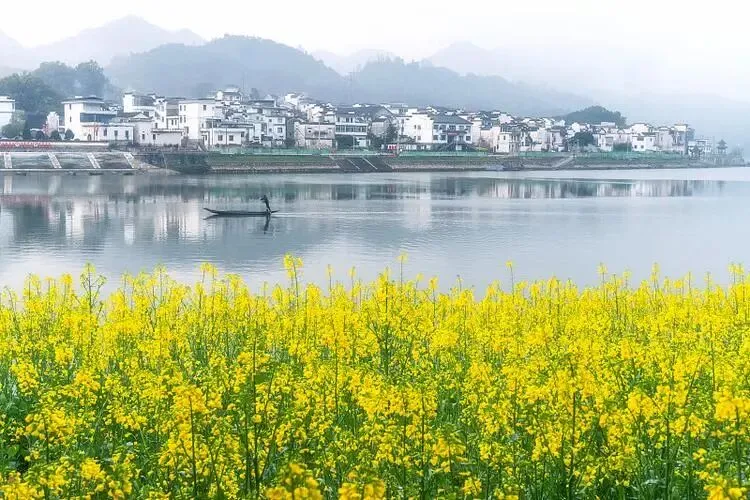春天的新安江,江水清澈碧透,宛如一条翡翠色的绸带。山坡上、河滩边、村落旁,大片大片的油菜花肆意绽放,铺天盖地的金黄色与错落有致的徽派村落交相辉映 。