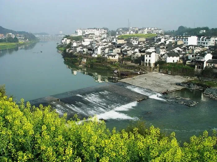 城边的渔梁坝是古徽州重要的水运码头,春日里江水丰沛,在坝上走一走,看江水奔流,感受千年历史与自然春光的交融 。