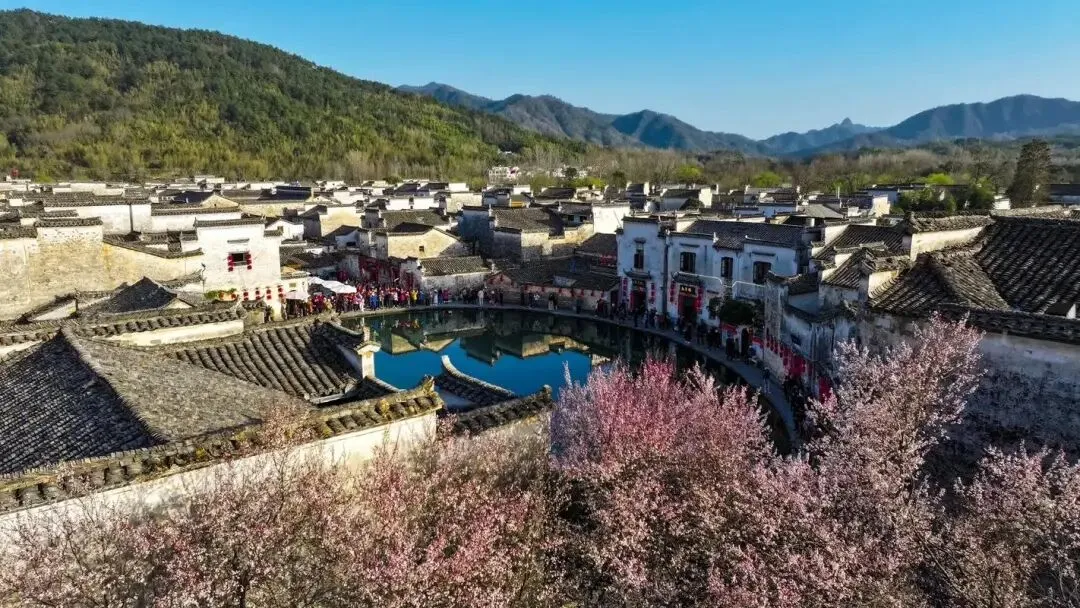 漫步在村中,空气中弥漫着清冽的梅香,与徽派古民居构成一幅绝美的“梅”好春光图 。