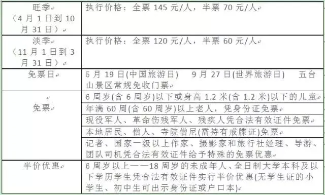 淡季时间:12月1日—3月31日;票价:135元。
