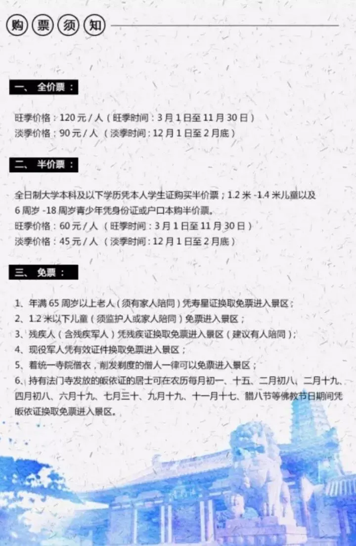 淡季(11月1日—次年3月底):全价票:80 元,半价票:40元。