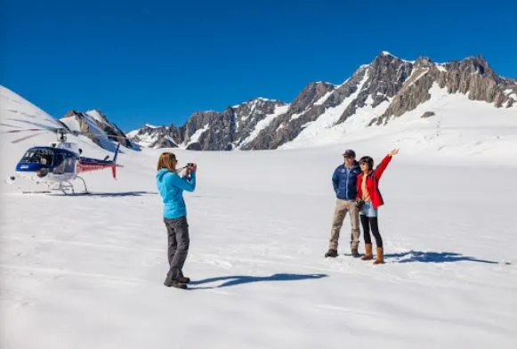 乘搭直升机飞往著名的弗朗兹约瑟夫远古冰川,除了一路饱览冰川壮观的景色外,丰富经验的驾驶员会带您以最刺激的方式在高空近距离观赏冰川瀑布。继而在专业导游带领下,到达只有直升机才能抵达的冰川最深处,体验独有的万年形成的奇妙蓝色冰洞,全程提供各种专业器具和衣物,让您轻松欣赏最震撼的冰川美景之余,还能体验独特的冰川健行,让您不虚此行。全程直升机接送,让您轻松体验冰川美景,留下终身难忘回忆。