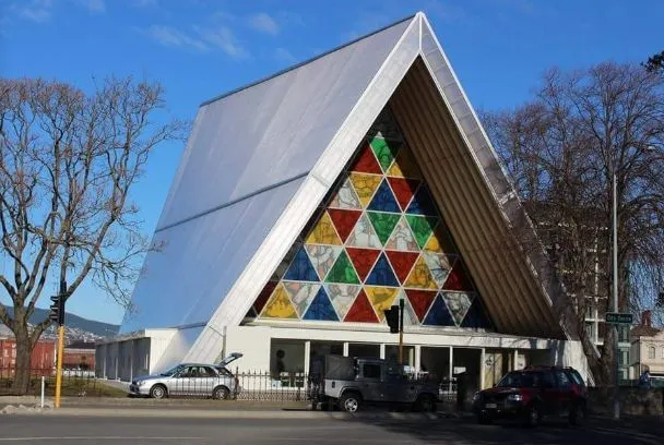 基督城的大教堂(Christchurch Cathedral)建于19世纪中叶,在2011年的大地震中严重毁坏,图为临时的”纸板”大教堂,每周开放7天,9:00am - 5:00pm。