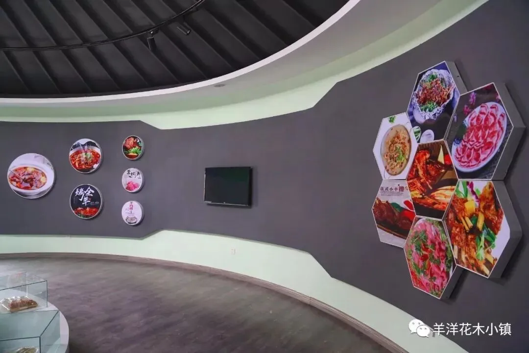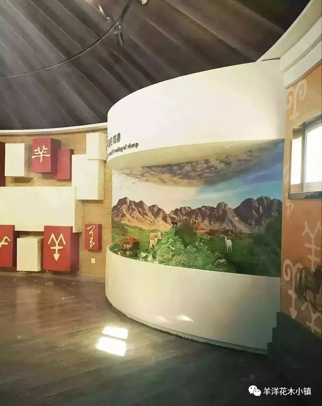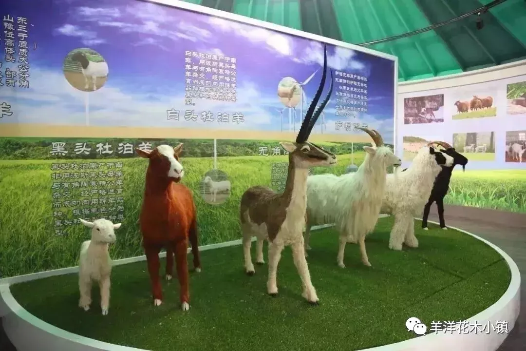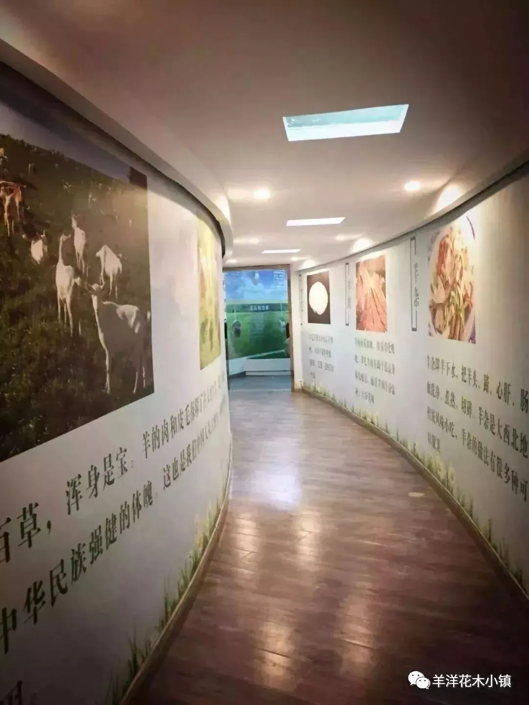 “羊博物馆”展览馆集中展示了羊肉、羊毛、羊绒、羊奶、羊皮等产品知识和无公害养殖,在这里可以纵观中国羊文化,满墙的“羊”字写法、羊产品、羊洋花木小镇纪念品等。
