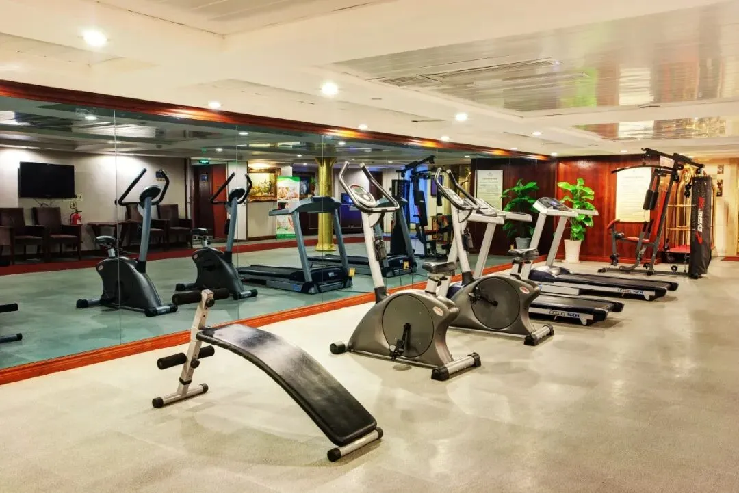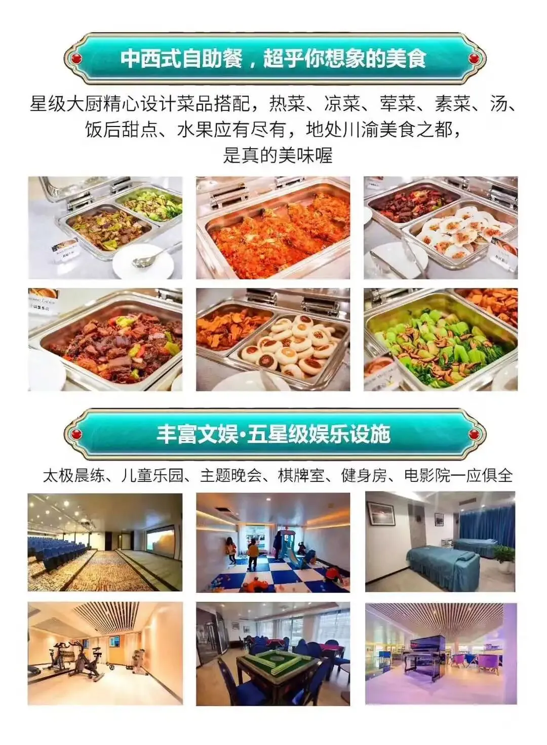 拥有超大江景露台客房、行政客房、 总统套房、商业步行街、名小吃店、雪茄吧、网络会所、图书吧、儿童乐园、桑拿中心、中西医疗馆、水疗会馆(SPA)、旋转大厅、多功能大厅、直升机停机坪、露天游泳池、模拟高尔夫、大型影剧院兼同声传译会议厅等各种商务娱乐休闲设施,并配有4部观光电梯,娱乐设施一应俱全,为游客休闲度假创造优美舒适的环境。