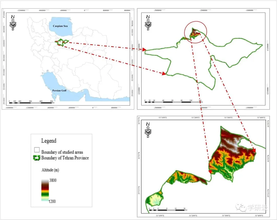 研究集中在伊朗德黑兰,覆盖了Shemiranat和德黑兰市38646公顷的面积(纬度:35°31′至36°61′N;经度:50°65′至51°40′E)(图1)。由于其强大的经济影响和快速的增长,德黑兰既是伊朗和西亚人口最密集的城市,是中东第二大大都市圈。