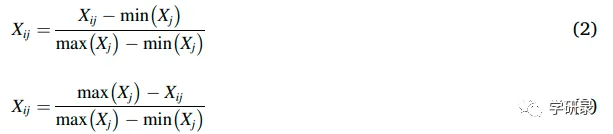 其中,Xij为第j个指标的初始值,Xij’为同一第j个指标的标准化值。max(Xj)和min(Xj)分别表示第j个指标的最大值和最低值。