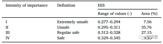 在本研究中,采用k-mean聚类方法,根据EES值将该区域划分为极端不安全、不安全、一般安全和安全四类。