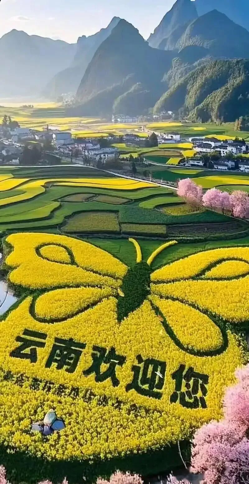 喀斯特山峰从花海里冒出来,像一幅立体油画。风吹过,花浪翻滚,说实话——震撼。