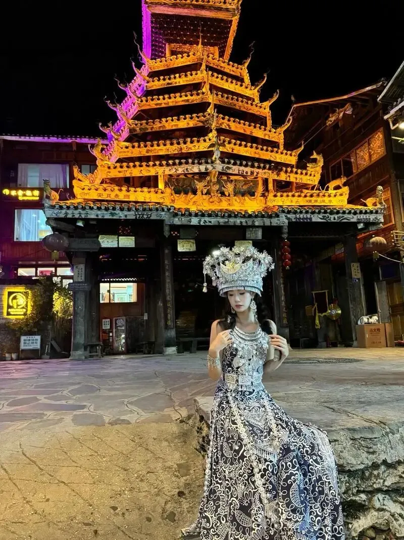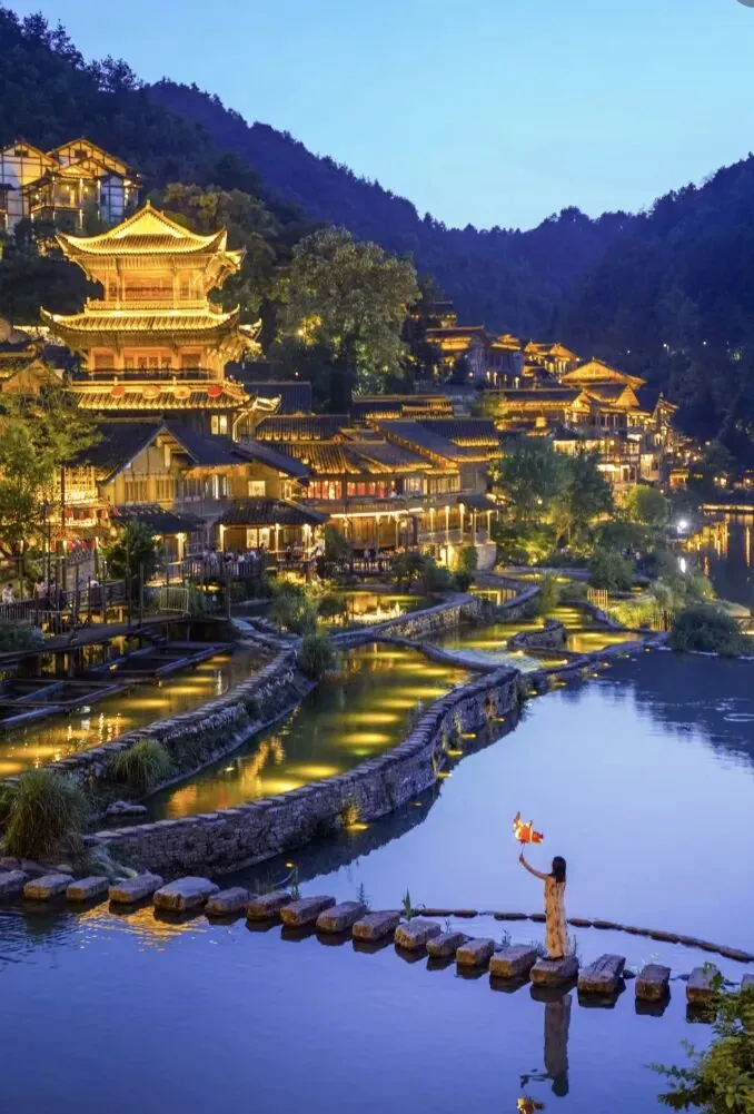 西江夜晚亮灯时,整个山坡像星河落下来——烟火气一下就出来了。