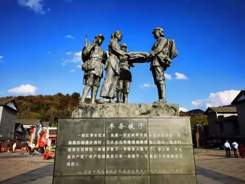 1934年11月,长征中的红军,沿着蜿蜒的山路翻过罗霄山脉,来到湘粤赣边界的汝城县。在沙洲村,红军纪律严明,战士们和衣睡在屋檐下、空地里,在野外架锅煮饭。村民徐解秀看到,冰冷的雨水湿透战士们的衣服,就让其中三个女红军睡到自己屋里。但徐解秀家一贫如洗,连一条完整的被子都没有。女红军们在急行军中,只保留了一条棉被,女主人就和三位女红军合盖这一条被子,挤在一张床上,而男主人则睡在门口的草堆上,守护着他们。三位女红军与徐解秀同吃同睡同劳动。几天后的清早,女红军们离开前,决定把仅有的一条被子送给徐解秀御寒,但她说什么也不肯要。僵持不下,一位女红军摸出一把剪刀,把这条被子剪成两半,说道:等革命成功后,一定要送你一条完整的新棉被。徐解秀接过半条棉被,眼泪流了下来。