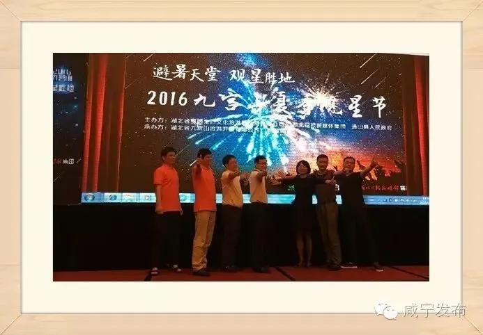 九宫山风景名胜区6月23日在武汉举行2016第二届夏季观星节新闻发布会,鄂旅投、湖北日报新媒体集团、通山县人民政府和鄂旅投九宫山公司等领导为第二届九宫山观星节启幕。