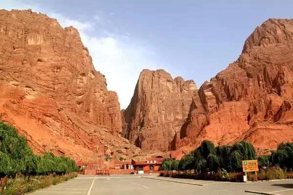 1,库车大峡谷,位于库车县以北约72km处,由红褐色山体组成,当地人称之为克孜利亚(维吾尔语,意为“红色的山崖”),峡谷主谷长2.7km,另有4条支谷,合计长度为3km。
