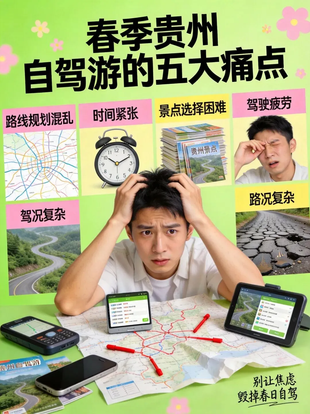 收藏!贵州人春季自驾游路线推荐-贵阳出发辐射周边省份的完整行程Z 收藏!5条贵州人春季自驾黄金路线 SPRING ROAD TRIP SPRING ROAD TRIP GUIDE 春季自驾游痛点:假期短、路线乱、景色单一、路况复杂。本文将为贵州自驾爱好者提供专业的春季自驾行程规划,解决路线设计难题,提升出行效率。
