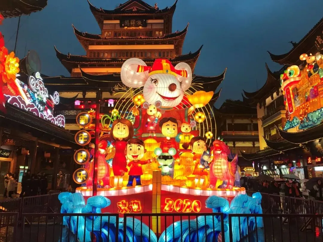 国家级非物质文化遗产项目——2020豫园新春民俗艺术灯会的核心区域以“全面奔小康•焕彩中国年”为总主题展开灯彩主题创作,在黄金广场、九曲桥广场、中心广场,打造以“五福迎新•幸福家庭”、“长三角融通•一衣带水”、“小康社会•美好中国”为分主题的三大片区。