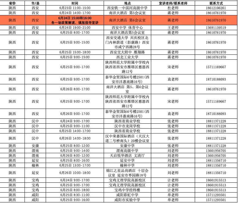 行程安排 | 北理工陕西各地区招生咨询会、联系方式一览