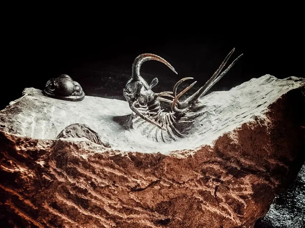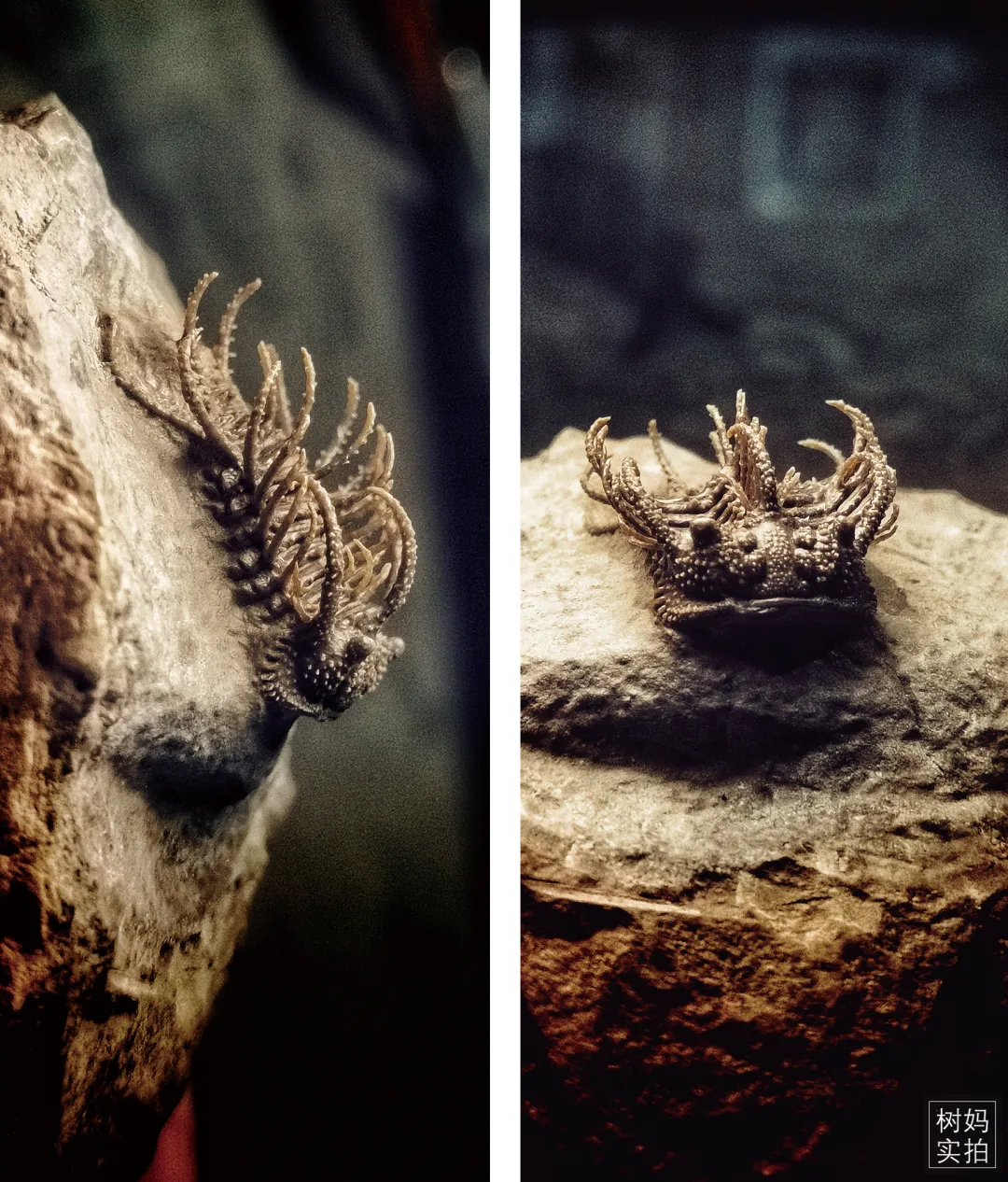 普通展馆里的三叶虫大多是印在一块块儿的石板上,但这里的三叶虫化石是立体的,有些甚至能看到像狮子鱼一样的细节。