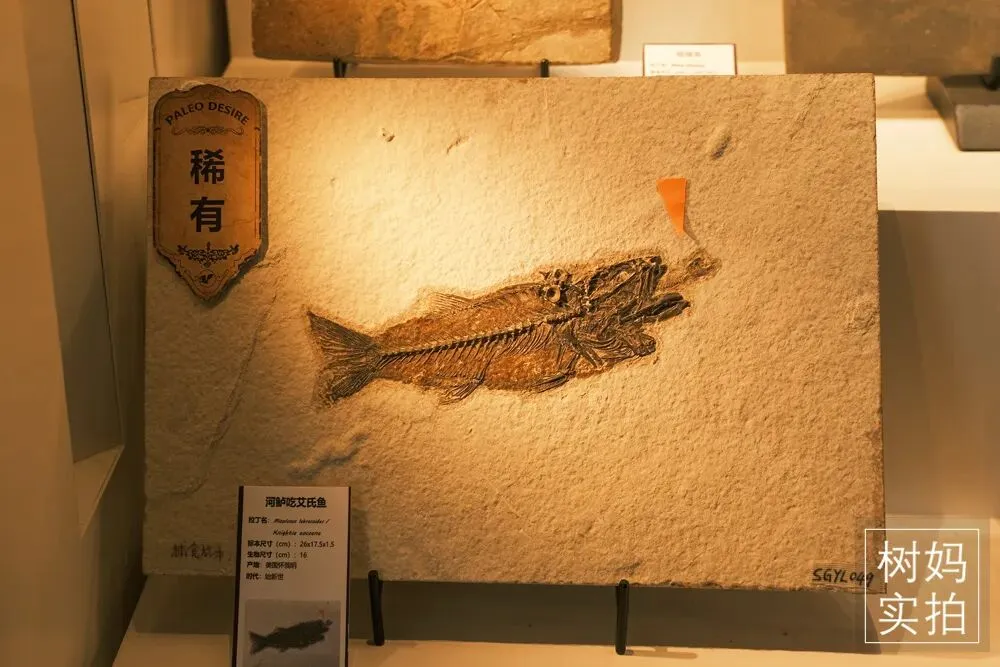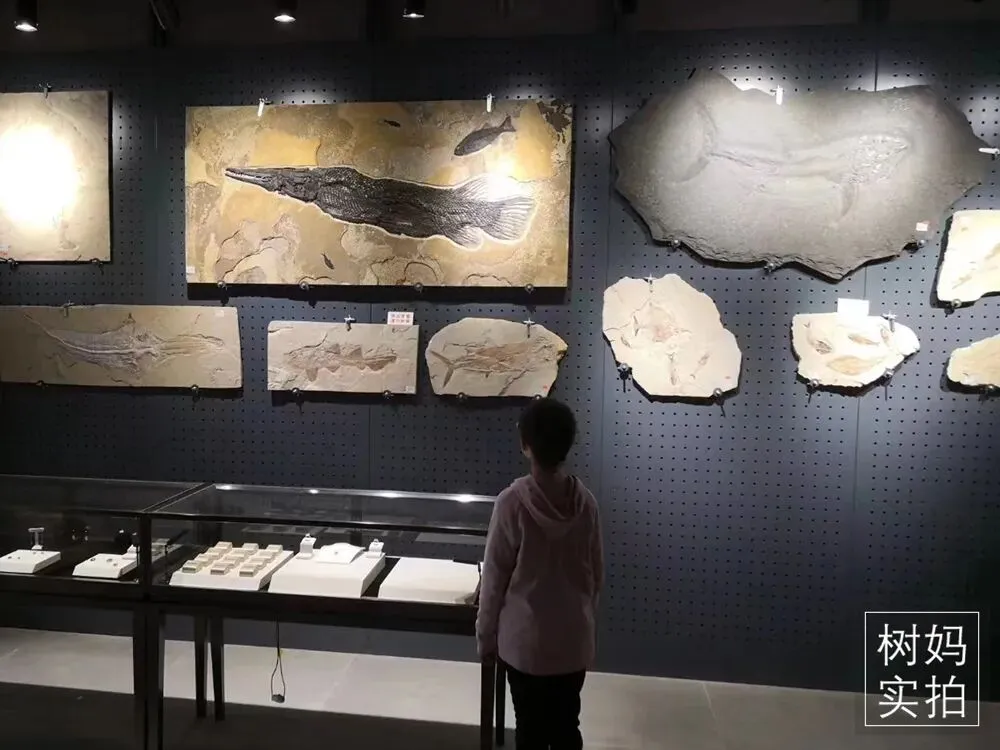一些非常珍贵的化石是标价出售的,比如门口的雀鳝化石,价值要70多万。