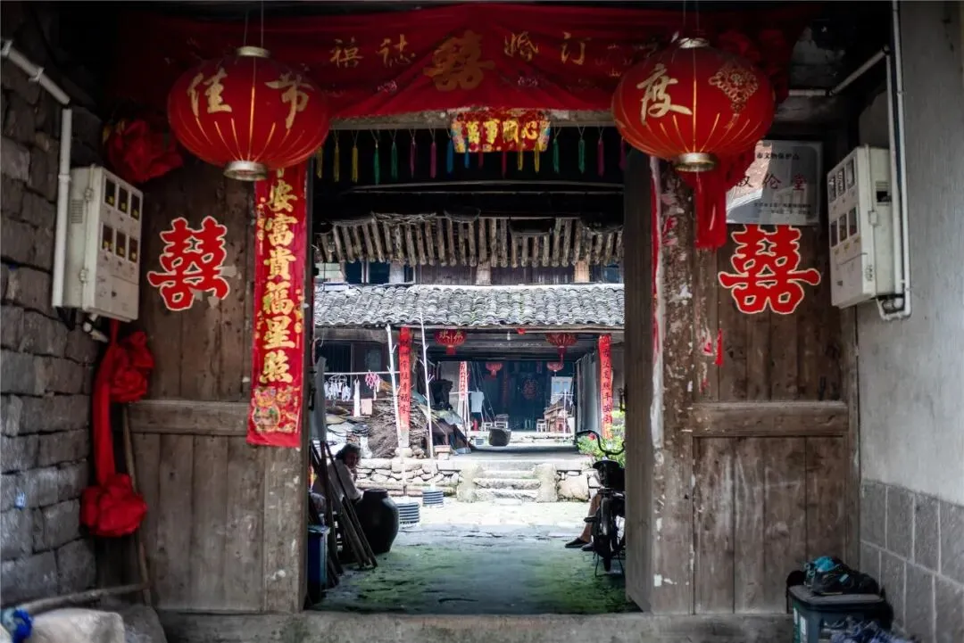 北閤的几座大宅如今都尚有人居住,叙伦堂的门上正巧喜气盈门,大红灯笼、门上的双喜字,以及红绸,透露着浓浓的生活气息,老人家们在门口坐着闲聊,乡音阵阵。