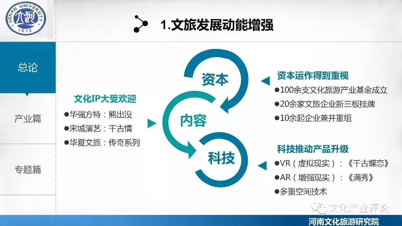 文旅发展动能增强。文旅产业在资本、内容和科技方面均有较大突破。资本运作得到重视,基金设立、新三板挂牌、兼并收购等屡有突破,不断为文旅产业注入动力。