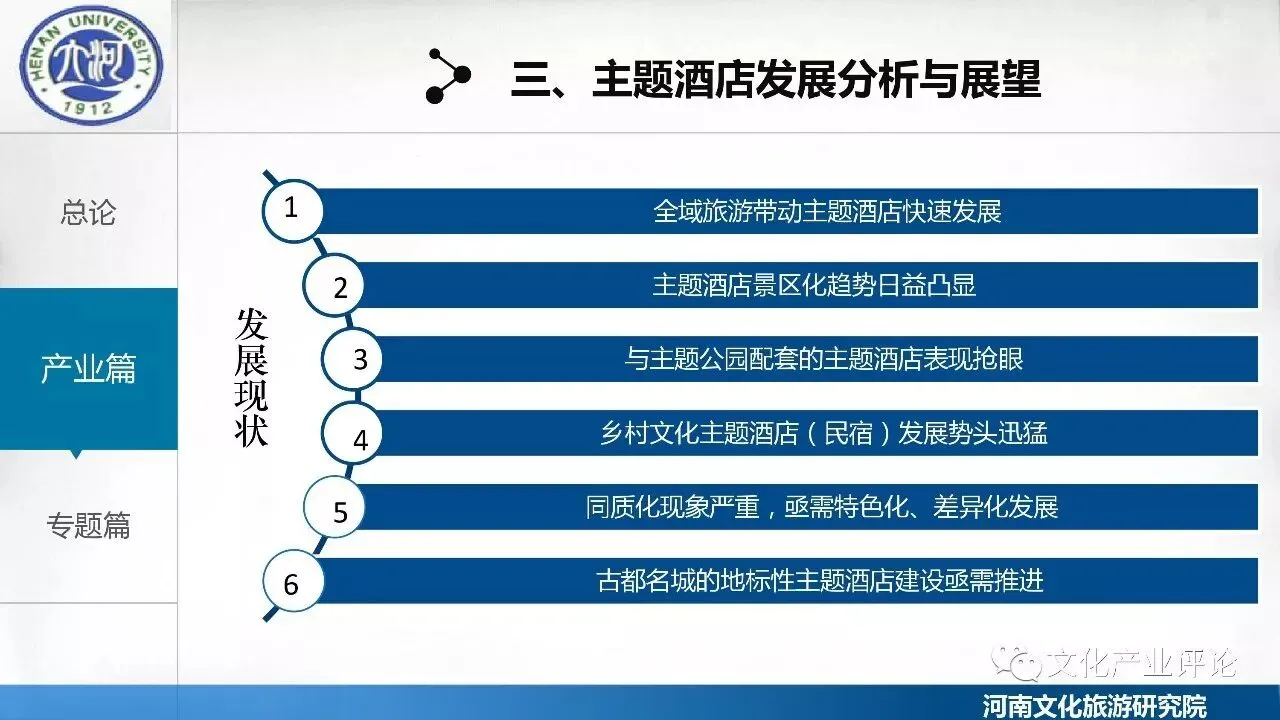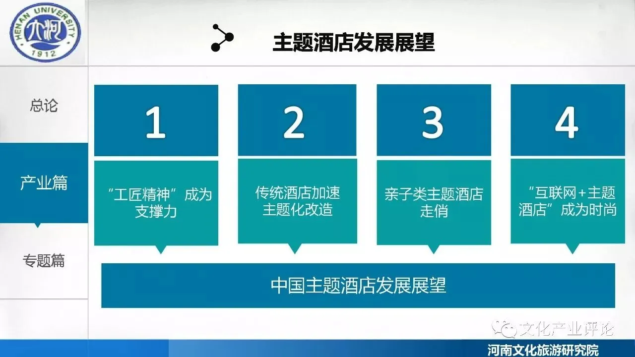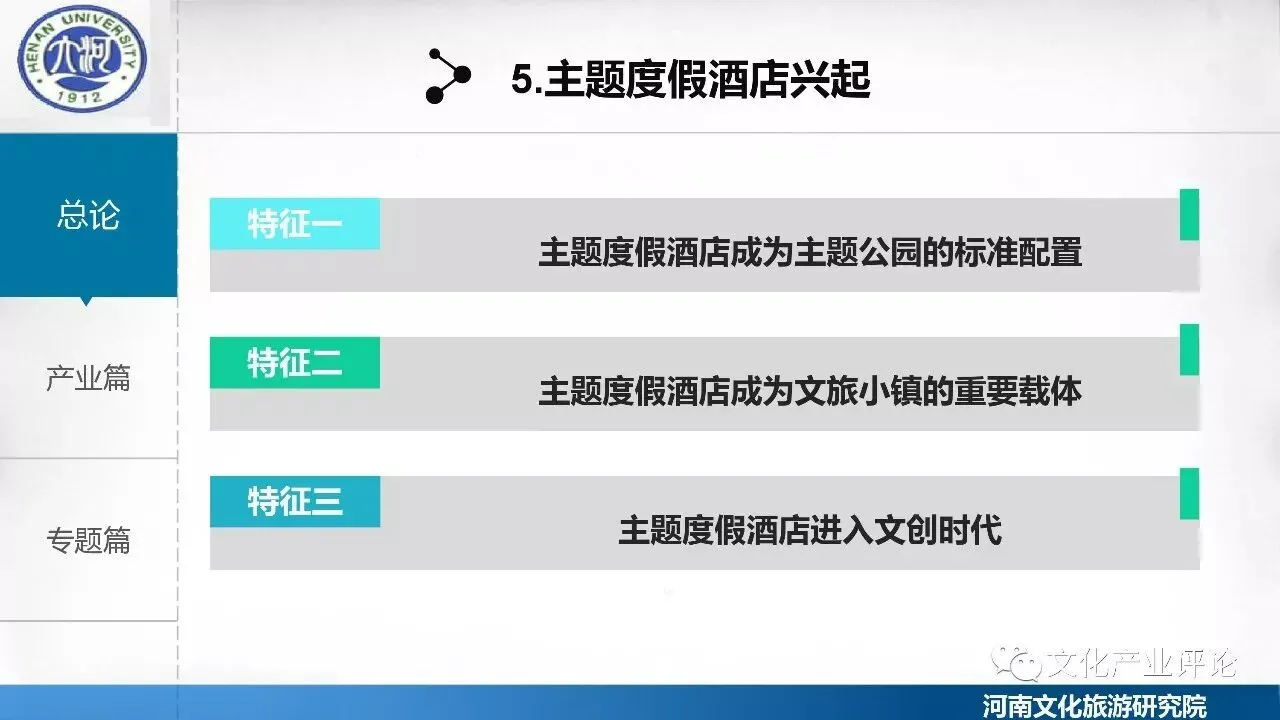 主题度假酒店兴起。主题度假酒店作为文旅产业新兴的经济增长点,已经成为主题公园的标准配置,有效提高了主题公园的综合效益。同时,由于当前旅游业从观光不断转向休闲度假,各种类型的主题酒店或精品民宿开始成为文旅小镇的重要载体。