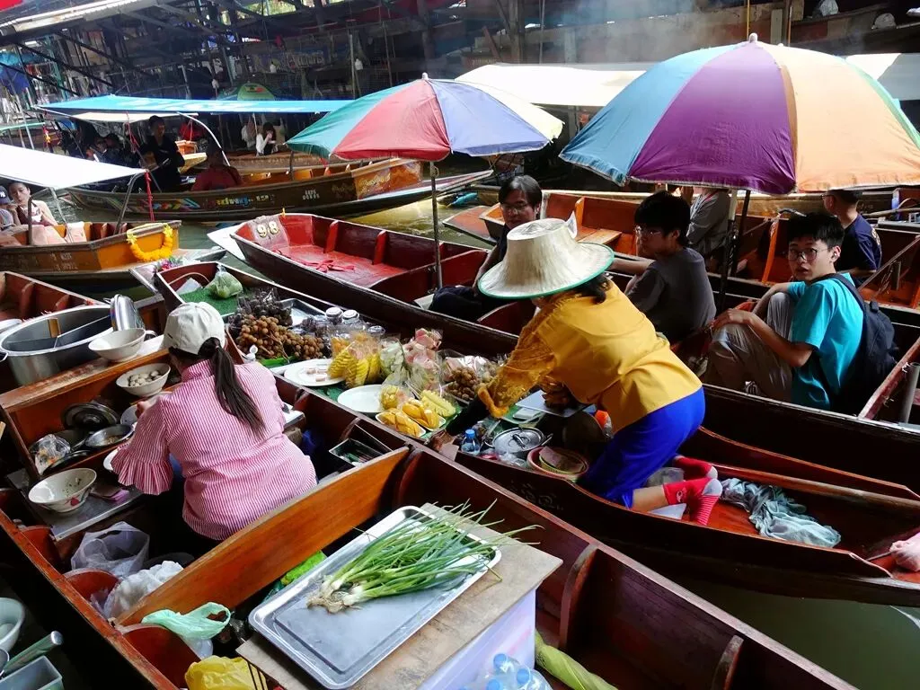丹嫩沙多水上市场位于叻丕府丹嫩沙多县,从曼谷市中心开车过去2个小时,是泰国保留了昔日水上集市风貌的地方。水上市场所在的河道里,各种木船兜售泰国水果、美食小吃和手工艺品。推荐乘坐手摇船1400泰铢/船,航程大概40分钟,带着你到四处河道兜一圈,我们的船夫带我们深入居民区,偶遇了一级保护动物圆鼻巨蜥。品尝了芒果糯米饭、泰国特色薄脆甜品、油炸香蕉等美食。