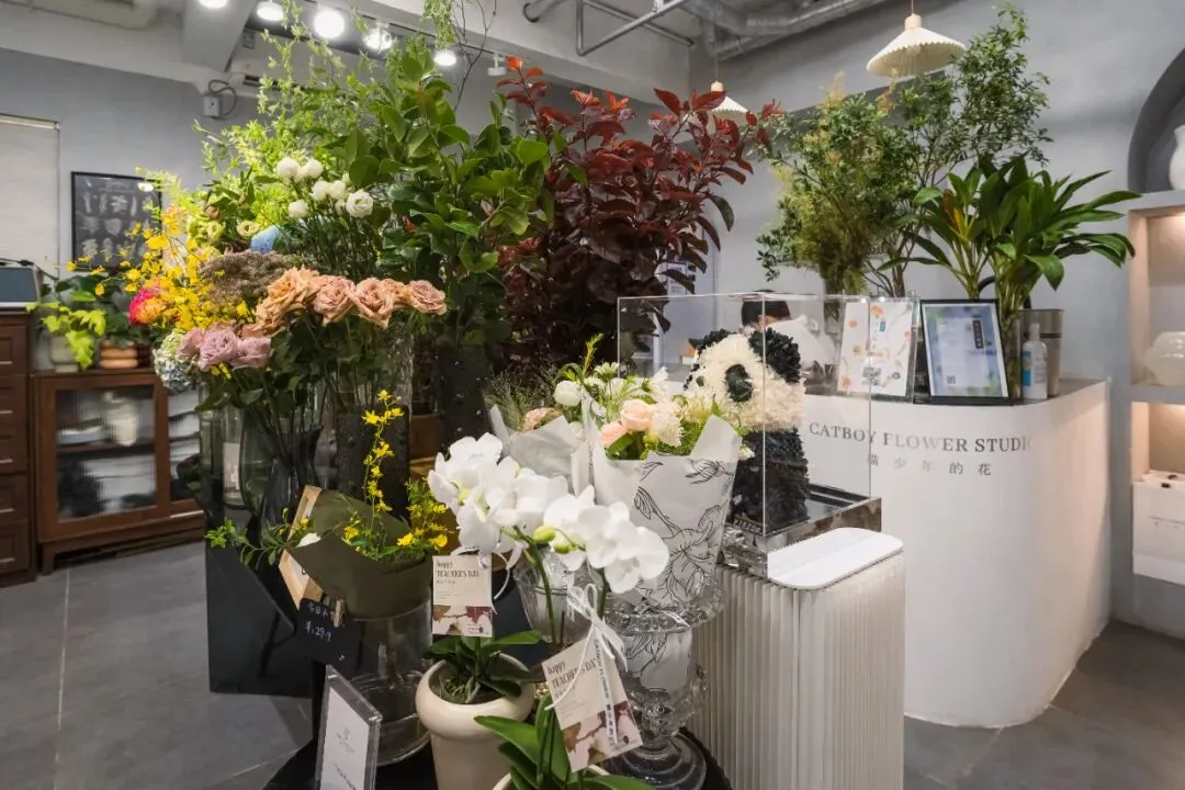 两位少年,四只猫,无数簇拥的鲜花,组合而成这诗意的生活,两位主理人都是爱猫的斯文男生,花店浪漫而别致,非常值得慢慢逛。