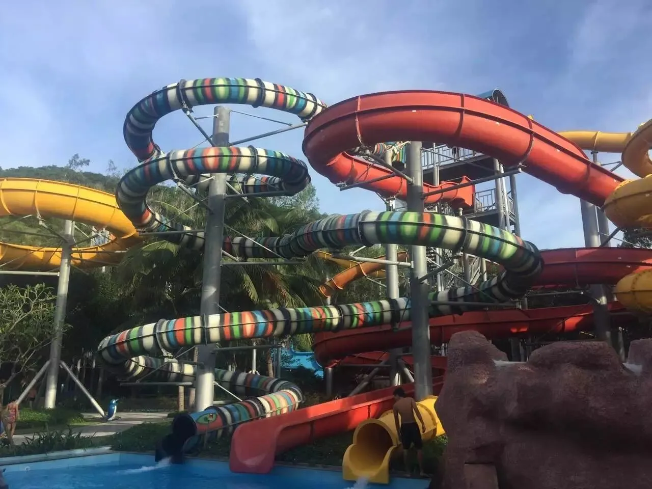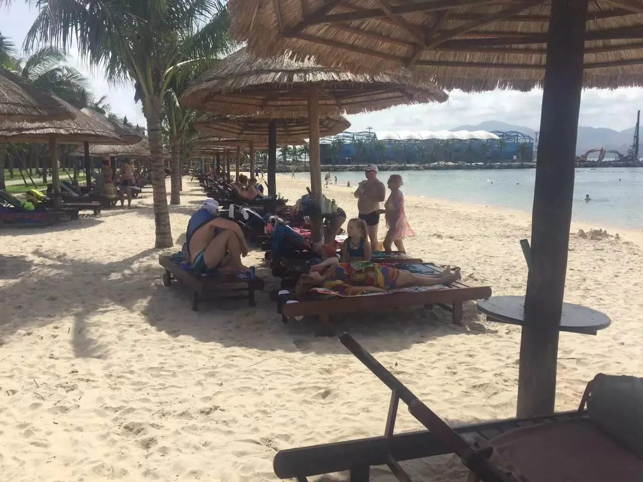 珍珠岛的另外一端,是一片沙滩和水上乐园,其实人也不是很多。你可以选择在沙滩上躺上一个下午,消磨时光。也可以选择水上降落伞,快艇等游乐项目。或者去水上乐园体会一下高台滑梯的刺激。在珍珠岛,你可以待上一整天,一点也不会觉得无聊,确实是适合带着小朋友一起去玩的地方。友情提醒一下:到了傍晚,你准备回芽庄的缆车处,可能会看见排着非常长的队伍,其实不用担心。排长队的是芽庄当地的工作人员或服务人员,游客只需要排另外一个队伍,几乎没有人,所以回去也会很快。