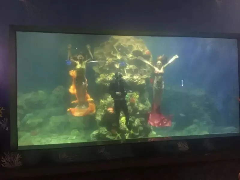 我去的当天正好是圣诞夜这天,岛上的圣诞气氛很浓。缆车下来是各种过山车类型的游乐设施,矿山火车,海盗船,跳楼机等等,主要基本都不需要排队,没有多少人。往下坐自动扶梯,有碰碰车,旋转木马,游戏房和高山滑车(可以看珍珠岛全景,可以控制下滑速度,也非常刺激)等项目。当然,整个珍珠岛的配套设施还没有完全建好,还有不少地方都是工地,最遗憾的就是海豚表演区还需要一段时间才会对外开放。珍珠岛还有一个非常大的水族馆,如果时间正好的话,你可以看到真人美人鱼表演,非常性感哦!