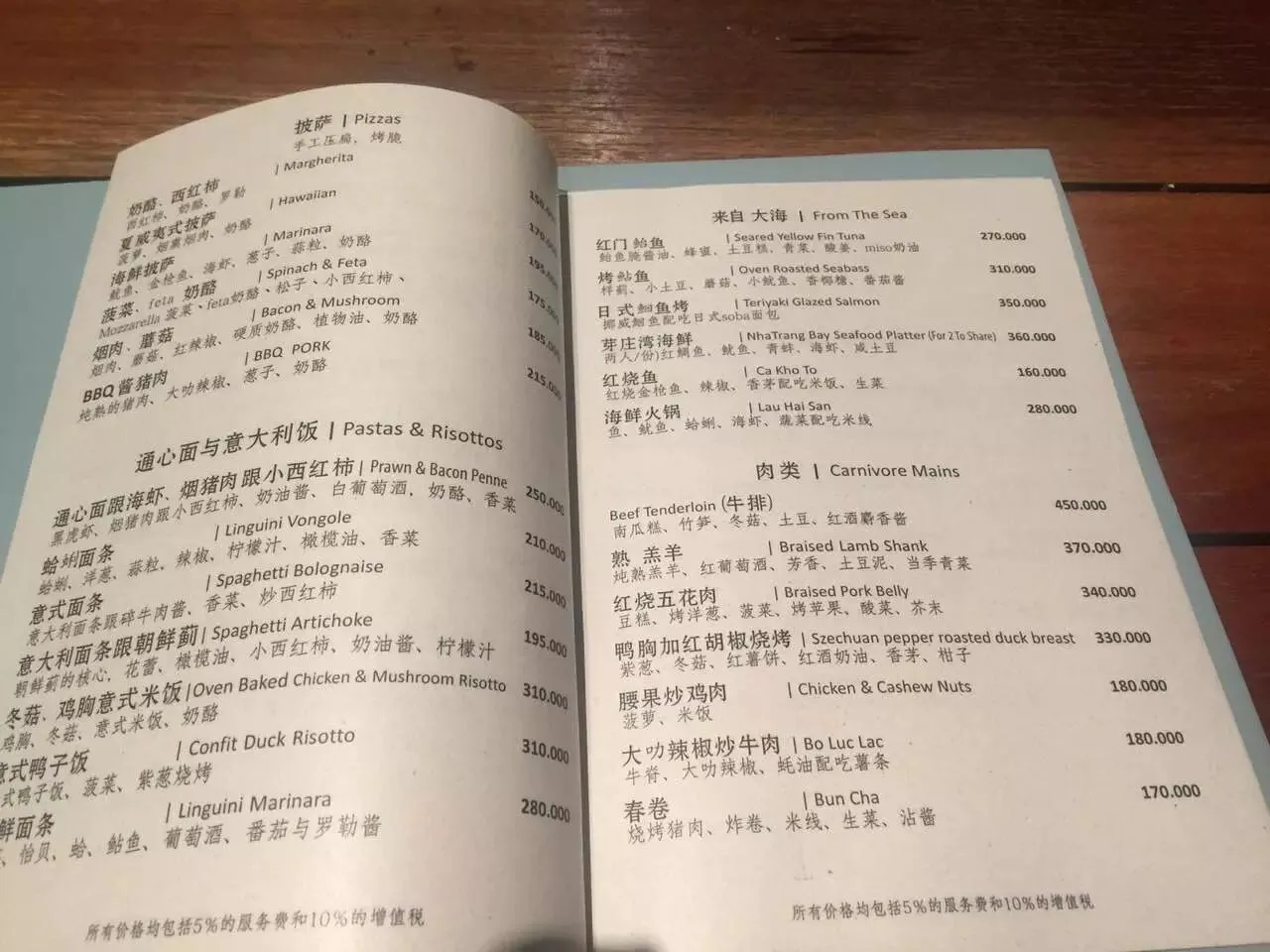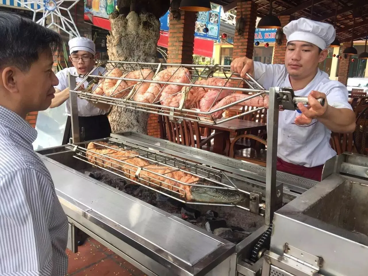 另外,芽庄当地的海鲜其实并不算便宜,因为算是旅游城市,消费这些的基本都是俄罗斯游客和中国游客。大龙虾,蟹,海鱼,大虾等价格就比国内便宜一点,靠近芽庄海滩的有不少海鲜排挡,一般餐厅都配有会说中文的服务员,当场挑选海鲜,烹饪方式基本都是烧烤,其实味道真的一般。另外,还有一种海鲜烧烤自助餐厅,每人22万越南盾左右(人民币70不到),门口一般会放着一个烧烤架,上面烤着大蟒蛇和小鳄鱼,不少人被吸引着拍照,进店消费,我就吃过一家,景色不错,正对海滩,但是味道就真的太普通了。蛇肉和鳄鱼肉,一点都不好吃。