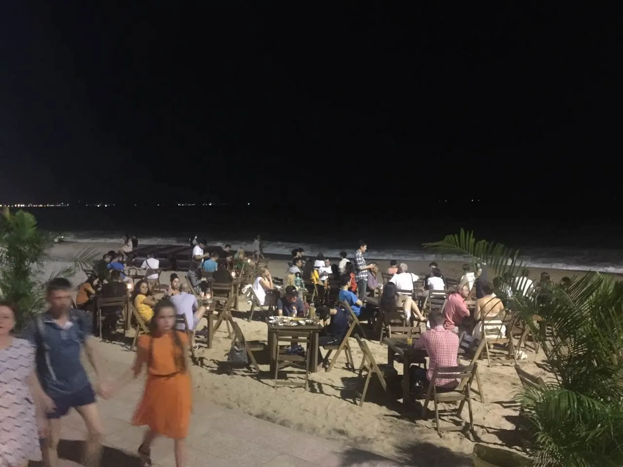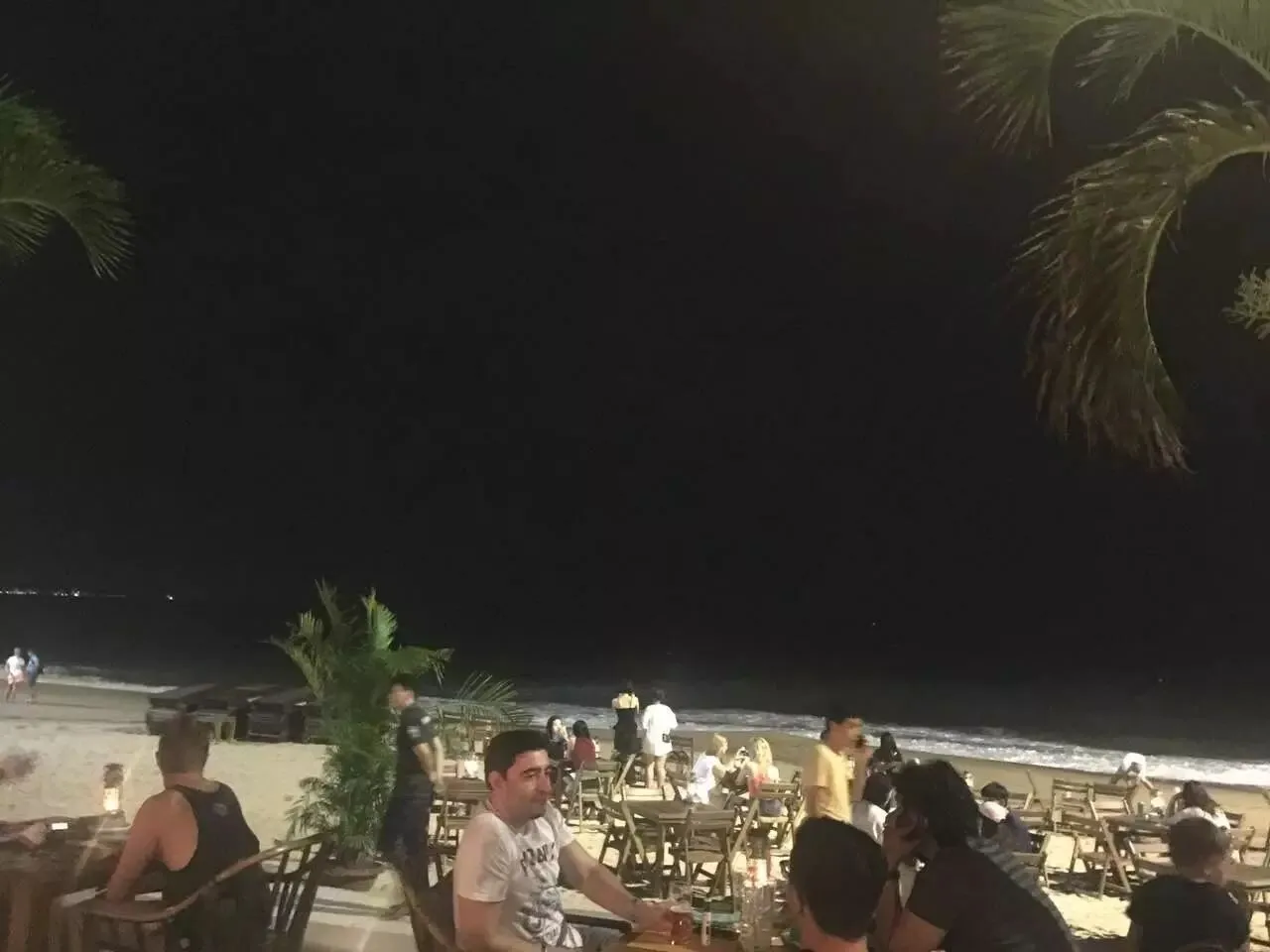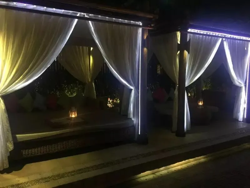 相对的,我推荐海滩边一家非常有“逼格”的酒吧餐厅,在星城酒店的正对面,名字叫Sailing Club。该餐厅消费水平较高,基本是路边排挡的3倍左右,但是它位置无敌,开在海滩上,餐厅正门在马路上,另外一端就直接是沙滩上了。你甚至可以直接选择,在沙滩上的餐桌就餐。真正的环境无敌,景色无敌。这家餐厅白天和晚上都非常热闹,餐厅里还有用于休闲的吊床和大床,吃完烧烤大餐,点上啤酒,或坐在海边吹吹风,看看沙滩上的比基尼美女(芽庄俄罗斯人游客极多,所以只要是有水的海滩或者游泳池,满眼都是比基尼),绝对色色一一。