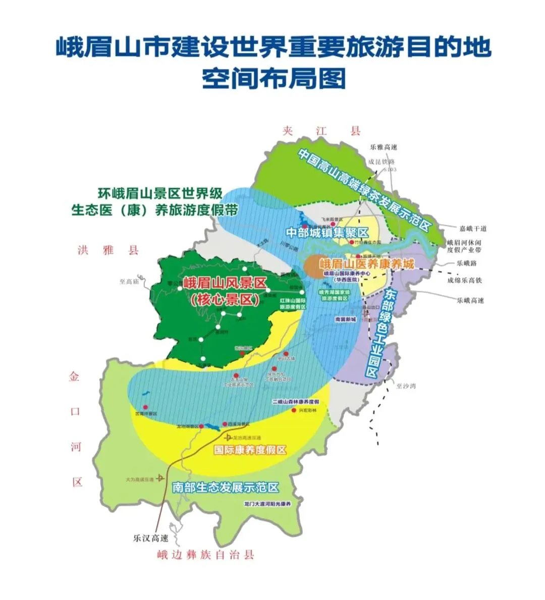 十大文旅医(康)养项目:峨眉南山康养综合体项目、太阳谷国际文化康养度假区项目、张沟度假区项目、龙池国际生态旅游度假区项目、三甲专科特色医院项目、中医中药智慧产业园项目、全龄生命健康医学中心项目、佛缘长生慈行中心项目、峨眉河走廊中医养生旅居项目、南山国际心理康复中心项目。